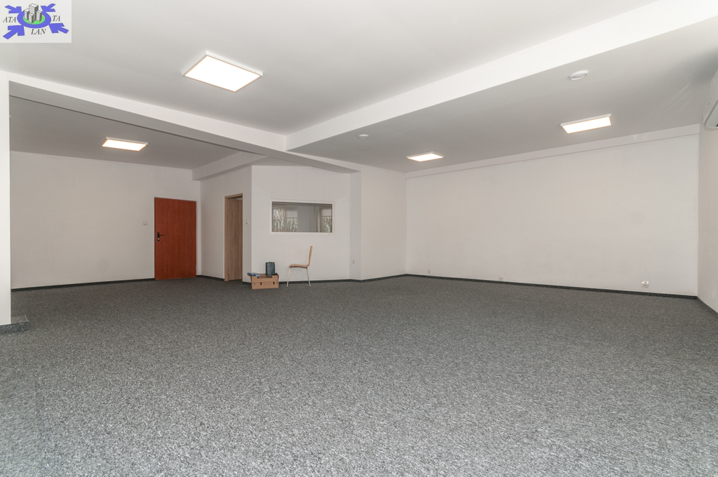 Pomieszczenie o powierzchni 78mkw i wymiarach 9,62m x 8m, w ramach tej przestrzeni wydzielone jest pomieszczenie biurowe 13mkw, które może pełnić funkcję salki konferencyjnej, gabinetu czy małego magazynu.