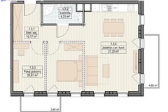Apartament będący przedmiotem tej oferty znajduje się na piętrze i ma powierzchnię 62,49 m2. Składa się z salonu z aneksem kuchennym, dwóch sypialni, łazienki i przedpokoju.