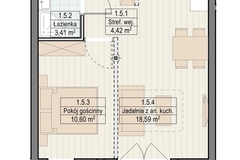 Apartament będący przedmiotem tej oferty znajduje się na piętrze i ma powierzchnię 37,32 m2. Składa się z salonu z aneksem kuchennym, sypialni, łazienki i przedpokoju.