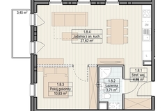 Apartament będący przedmiotem tej oferty znajduje się na piętrze i ma powierzchnię 47.28 m2. Składa się z salonu z aneksem kuchennym, sypialni, łazienki i przedpokoju.