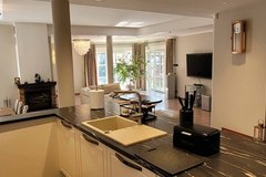 -Przestronna, otwarta strefa dzienna salon z kominkiem, kuchnia z jadalnią (82,93 m2) i wyjściem na ogród,