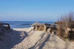 Odległość do morza ok. 1 km pieszo lub ok. 2 km samochodem. Przed plażą bardzo duży parking, następnie krótkie przejście przez las i piękna, piaszczysta, szeroka plaża.