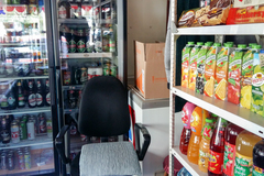 Pawilon wykonany jest z blachy, witryny zamykane są roletemi, w pomieszczeniu są lodówki i chłodnie.