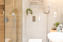 - łazienki z WC wyposażonej w kabinę prysznicową typu "walk in"