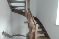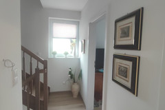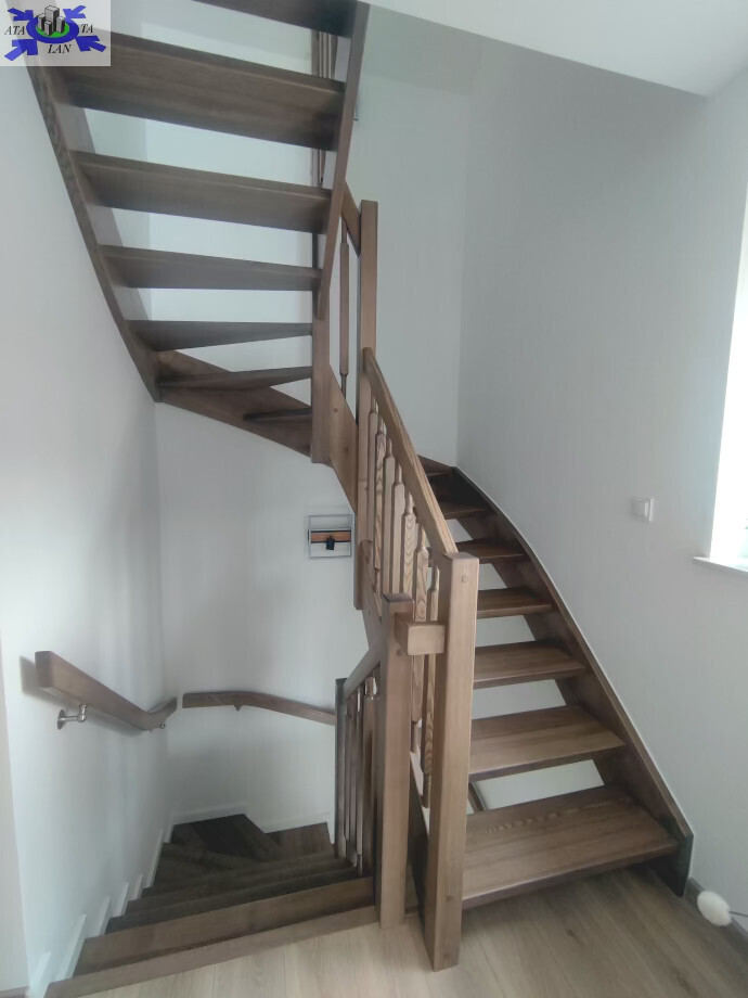 Na piętro prowadzą schody wyłożone jesionowym drewnem.