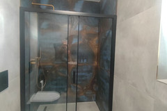 Po obu stronach szklane witryny z podświetleniem nadające pomieszczeniom "urokliwego klimatu".