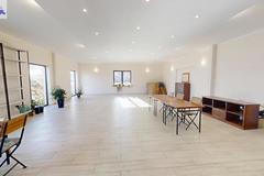 Parter 125 m2, z czego 93 m2 to 1 duża sala z 3 dużymi oknami, korytarz, wc, kuchnia, kotłownia.