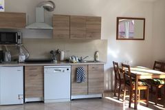 -Parter w pełni wyposażony salon z aneksem kuchennym z wyjściem na zewnętrzny taras, łazienka z WC