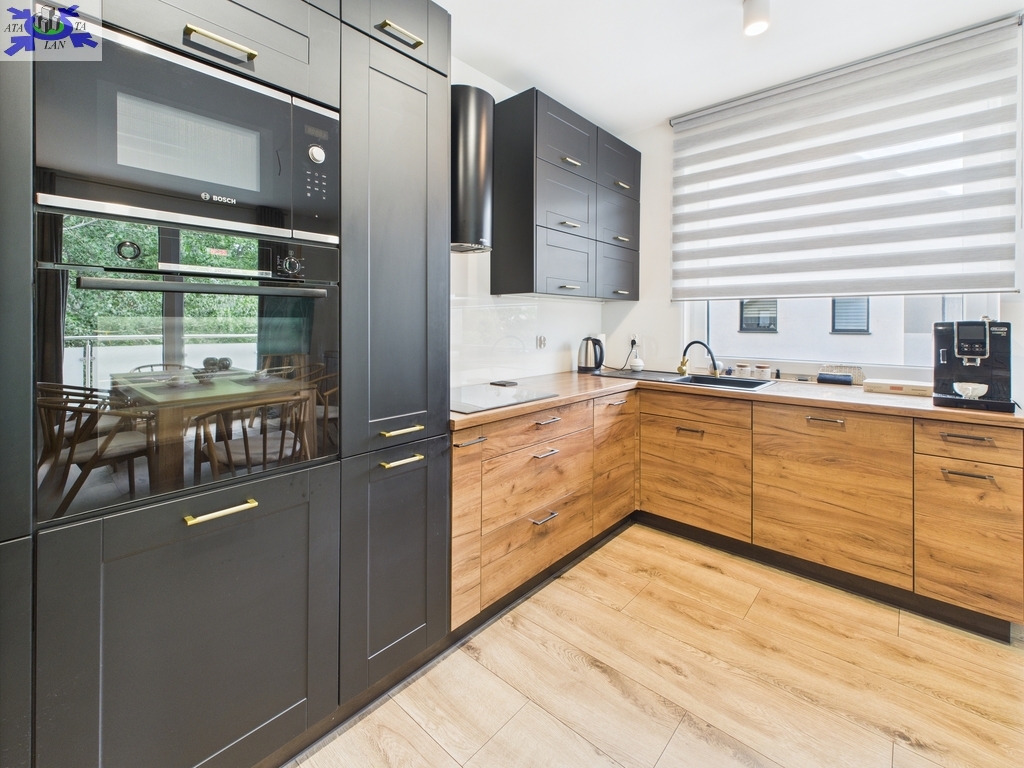 * W pełni zabudowane AGD płyta indukcyjna, piekarnik z funkcją pary, zmywarka, lodówko-zamrażarka, okap w zabudowie