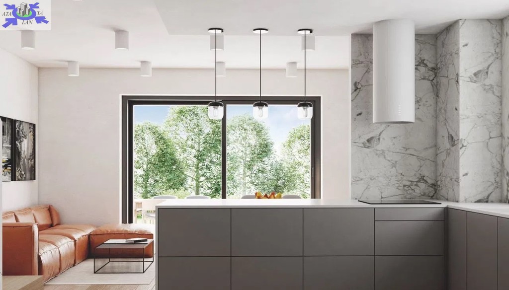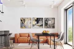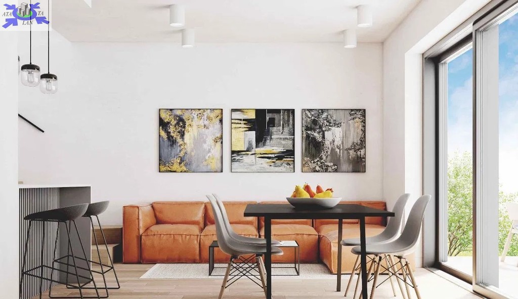 - Jasny przestronny salon z aneksem kuchennym o powierzchni 24,45 m2 z bezpośrednim wyjściem na taras o powierzchni około 24 m2