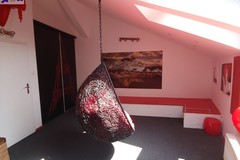 Na drugim poziome, gdzie prowadzą drewniane schody znajduje się