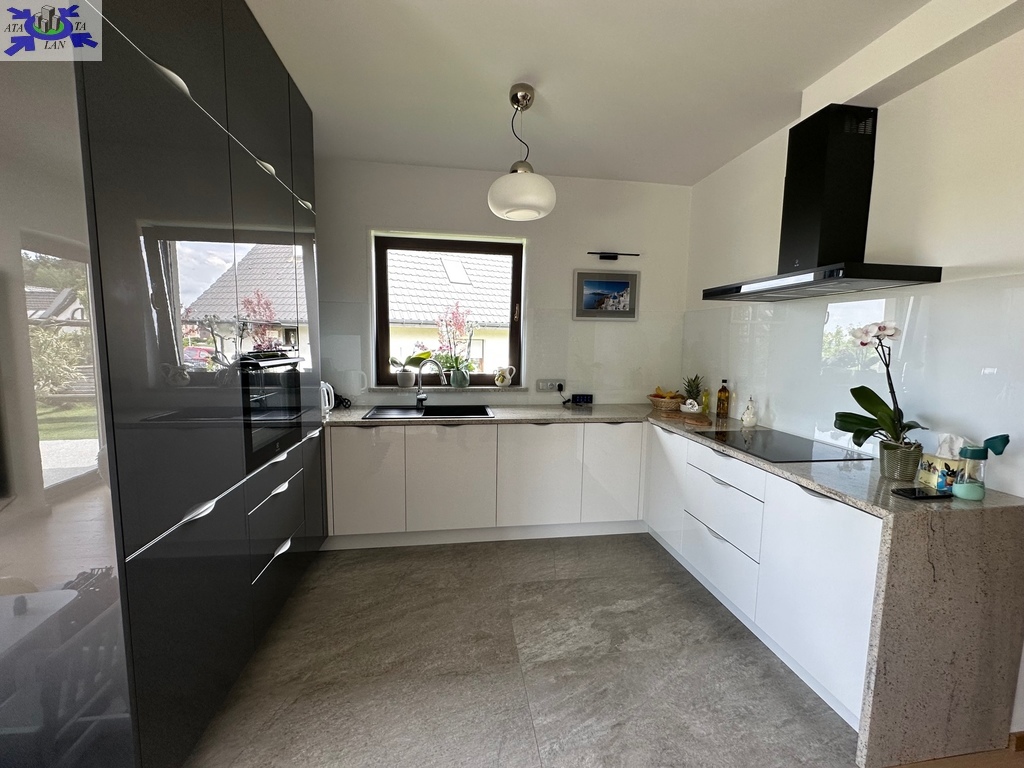 - otwarta kuchnia w pełni umeblowana, wykonana z materiałów firmy Eger, blaty z kamienia naturalnego - granit,