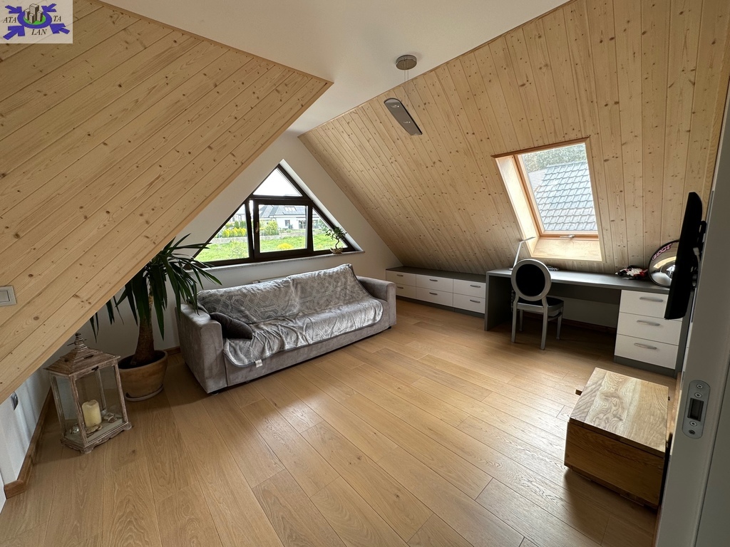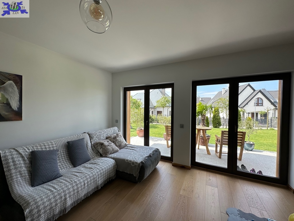 Działka w pełni zagospodarowana z nasadzeniami, trawa z rolki, system nawadniania Rain Bird oraz robot koszący Husqvarna. Na działce domek gospodarczy ze składzikiem na drewno opałowe, drewniana huśtawka wykonana na zamówienie, oraz sauna wolnostojąca.