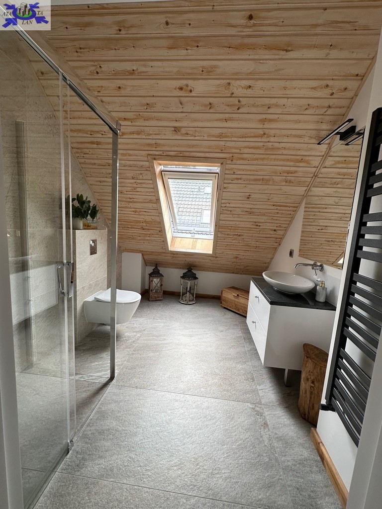 - łazienka z oknem, wykończona z włoskich materiałów (gres Atlas Concorde)