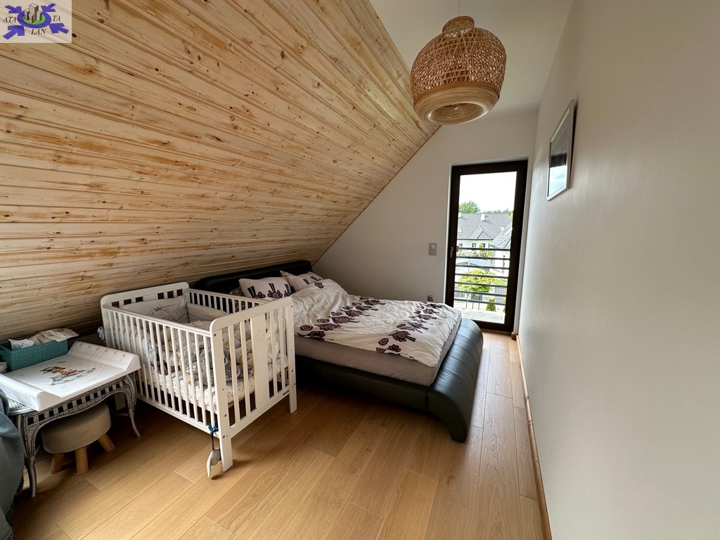 - 3 sypialnie z zabudowami meblowymi - w sypialni głównej zabudowa typu walk-in closet, z pozostałych dwóch wyjście na wspólny balkon z panoramą na pobliskie pola i lasy