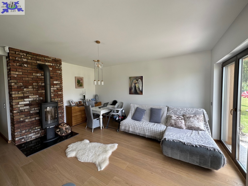 - przestronny salon z kominkiem typu koza firmy Jotul oraz z wyjściem na taras
