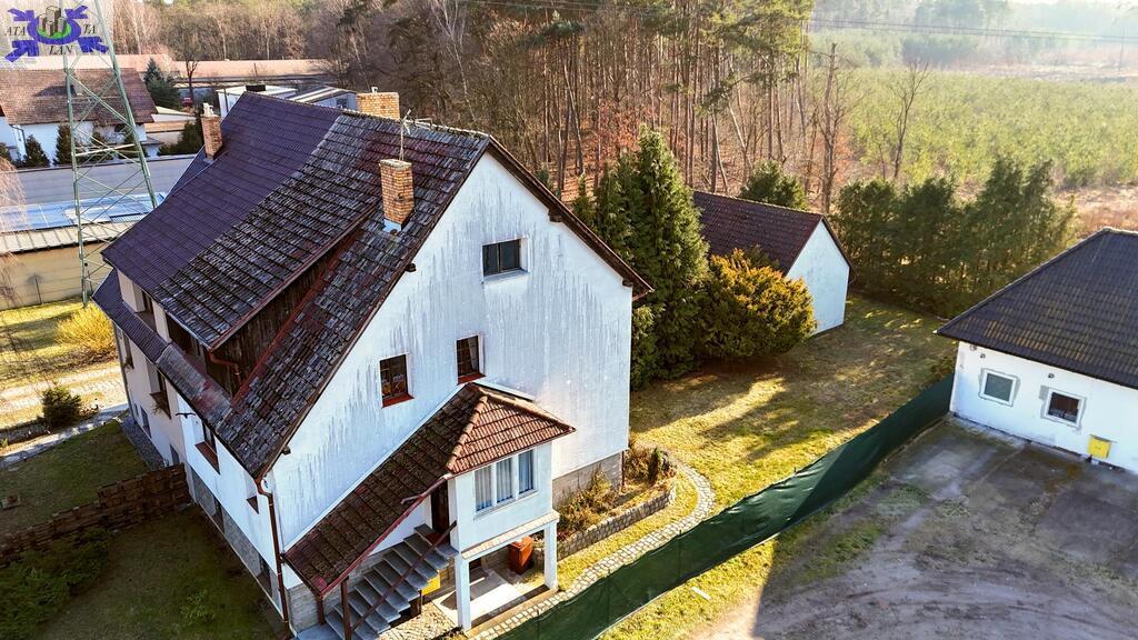 Nieruchomość jest podzielona na współwłasność - przedmiotem umowy jest jedna druga nieruchomości. Dom posiada dwa wejścia, co daje możliwości wydzielenia nawet dwóch oddzielnych mieszkań. Ogrzewanie gazowe - piec gazowy nowej generacji. Ciepła woda z pieca gazowego. Nieruchomość podłączona do wodociągu i kanalizacji. Z tyłu domu znajduje się mały ogród z możliwością urządzenia własnego kącika. W pobliżu znajdują się trasy rowerowe i tereny zielone. W miejscowości znajdują się szkoła i przedszkole. Dom wykończony w stylu lat 90-tych, z dużą ilością drewna.