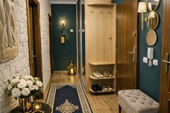 Całość dopełnia łazienka z wanną i WC oraz funkcjonalny przedpokój z miejscem na przechowywanie.