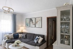 Centralnym punktem mieszkania jest komfortowy salon, który z powodzeniem stanie się przestrzenią do wspólnych spotkań, odpoczynku po pracy czy spokojnych wieczorów z książką lub filmem.