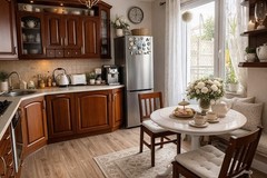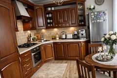 Kuchnia została wykonana na wymiar i wyposażona w kompletne AGD, co pozwala korzystać z niej od pierwszego dnia. Dodatkowym atutem jest system odwróconej osmozy, zapewniający wysoką jakość wody pitnej.