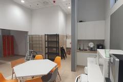 Na powierzchnię 180 m2 składają się jedno pomieszczenie główne (ok. 100 m2), trzy pomieszczenia dodatkowe (35 + 19 + 16 m2) wydzielone ścianami działowymi oraz powierzchnia pomocnicza (toalety, komunikacja).