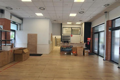 Wielkie witryny wystawowe do samej podłogi, dające bardzo dużo światła dziennego.