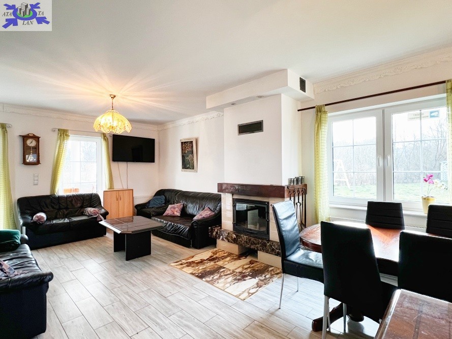 Rozkład pomieszczeń rozciąga się na dwóch kondygnacjach i oferuje harmonijne połączenie komfortu i prywatności. Na parterze znajduje się otwarta i przytulna strefa dzienna z eleganckim kominkiem, który zapewnia przyjemne ciepło w chłodniejsze dni. Przestronna jadalnia to idealne miejsce na wspólne chwile z rodziną i przyjaciółmi. Funkcjonalna kuchnia, nowoczesna łazienka, dodatkowy pokój o wszechstronnym zastosowaniu oraz praktyczne pomieszczenie gospodarcze dopełniają ofertę tej kondygnacji.