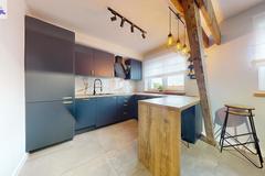 Apartament jest po remoncie podczas którego właściciele zachowali charakterystyczne dla kamienic smaczki wkomponowane w modne i nowoczesne wykończenie, pomieszczenia są duże i ustawne zapewniające wygodę. W salonie i sypialni na podłodze ładna deska, na ścianie częściowo odsłonięta cegła. Części kuchennej ogrzewanie podłogowe a kuchnia zabudowana meblami na wymiar z wysokiej jakości sprzętem AGD. Łazienka z dużym prysznicem wykończona ładnymi kafelkami. Spiżarnia z nowym piecem gazowym i pralką. W korytarzu miejsce na odzież wierzchnią.