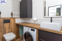 Do użytku piwnica, w pokoju dziennym postawiono ścianę regipsową dzięki której została wydzielona garderoba.