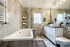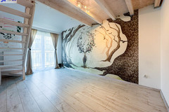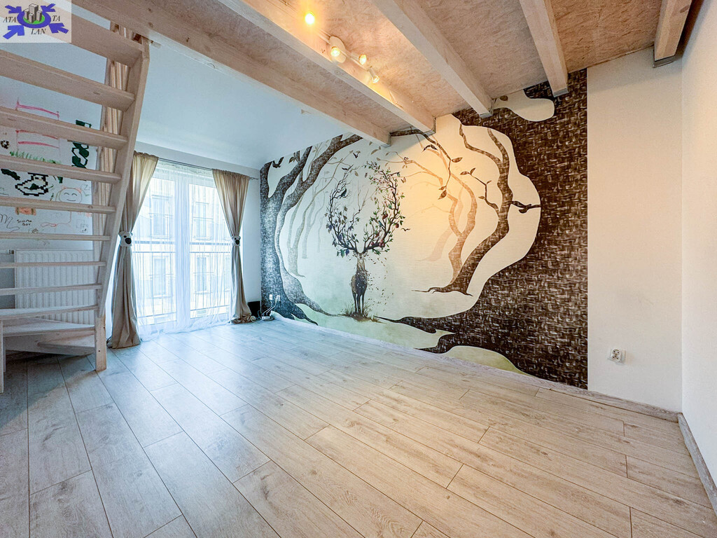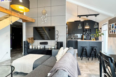 Dodatkowo dzięki wysokiemu sufitowi w salonie została zaaranżowana antresola, pełniąca funkcję wygodnej sypialni - pozwala maksymalnie wykorzystać przestrzeń i nadaje wnętrzu niepowtarzalny charakter. Powierzchnia antresoli nie jest wliczona do metrażu mieszkania.