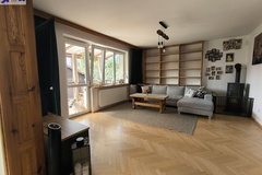 Salon (22 m2) - jasny i przytulny, z kominkiem, dębowym parkietem i wyjściem na taras