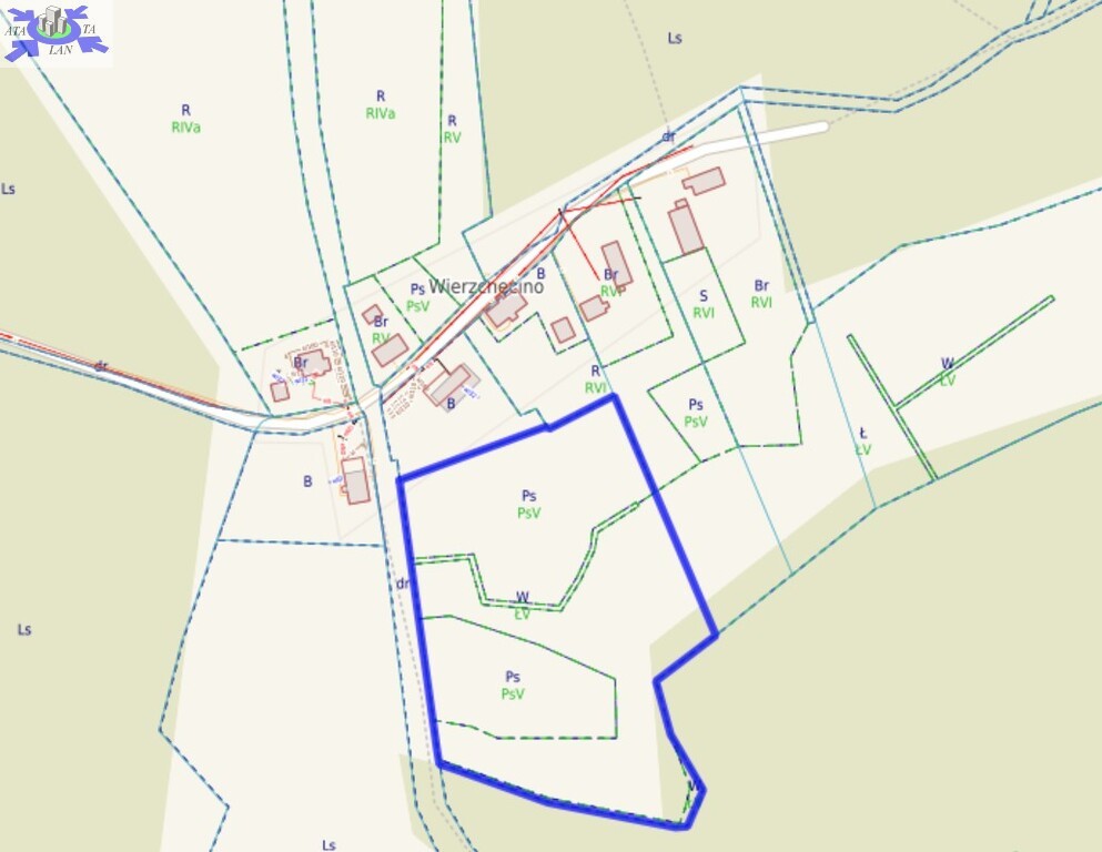 Działka o pow. 2,25 ha położona jest w osadzie Wierzchęcino, w gminie Nowogard, ok. 1 km od drogi wojewódzkiej łączącej Nowogard z Golczewem.