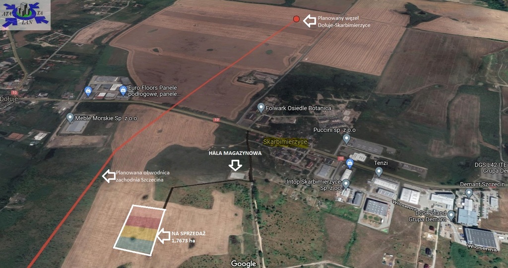 W odległości 150 m od działki ma przebiegać obwodnica zachodnia Szczecina co dodatkowo wpływa na atrakcyjność tego terenu. Planowana jest jako dwujezdniowa droga ekspresowa o długości ok. 50 km, prowadząca od autostrady A6 w m. Kołbaskowo, przez Police, tunel pod Odrą, do węzła drogowego w m. Goleniów (skrzyżowanie dróg ekspresowych S3/S6). Ponadto w Skarbimierzycach przewidziany jest jeden z węzłów.