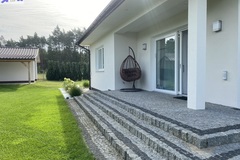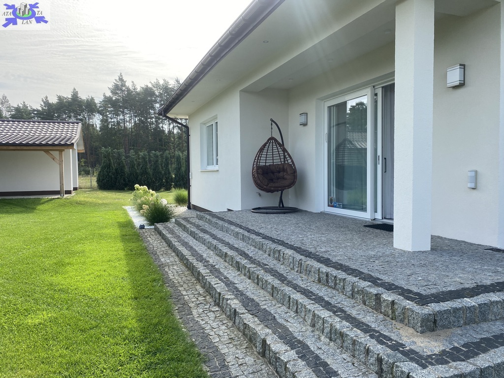 Dom wykończony w wysokim standardzie, gotowy do zamieszkania. Dzięki ogrzewaniu podłogowemu i kominkowi zapewnia komfort cieplny przez cały rok. Duże okna doświetlają wnętrza, a otoczenie lasu gwarantuje prywatność i spokój.