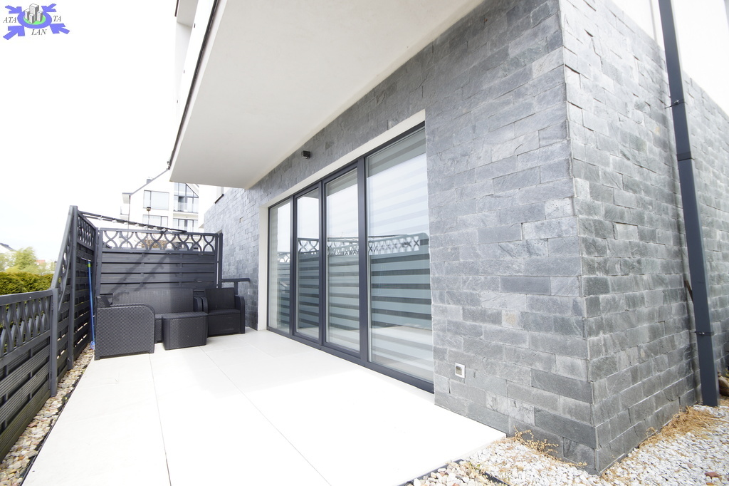 2 pokojowy apartament ogródkiem, klimatyzacją i miejscem parkingowym na zamkniętym osiedlu Ustroniu Morskim w kompleksie z 2021 r.