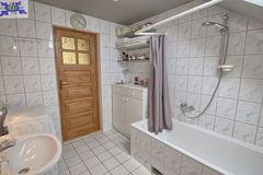 W salonie, sypialniach i kuchni na podłodze jasna deska barlinecka, ściany wygładzone i pomalowane. Łazienka z wanną w glazurze i terakocie.