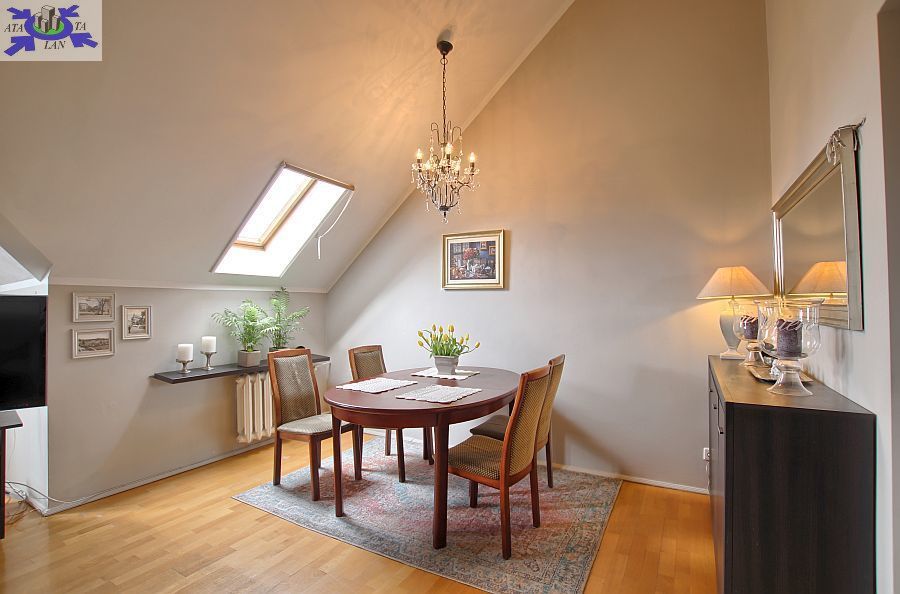 Mieszkanie jest bardzo słoneczne, jasne i ciepłe z przestronnym salonem , który w najwyższym punkcie ma 5 m wysokości, dwiema dużymi sypialniami, odrębną kuchnią , holem i łazienką razem z wc. oraz pomieszczeniem w którym może powstać dodatkowe wc (wykonano podłączenia) lub garderoba. Nad częścią mieszkania znajduje się antresola.