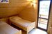 Piętro domku to część sypialna. Znajdują się tam sypialnia zamykana z wyjściem na balkon oraz otwarta przestrzeń sypialniana przy wejściu na schody.