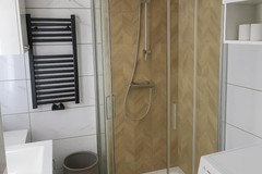 Łazienka - elegancko wykończona, z prysznicem typu walk-in i miejscem na pralkę.