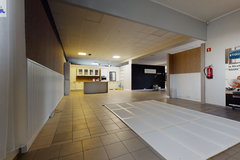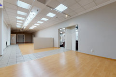 Wewnętrzne ściany gładkie, na podłogach w salach sprzedaży panele, w pomieszczeniach biurowych i socjalnych terakota.