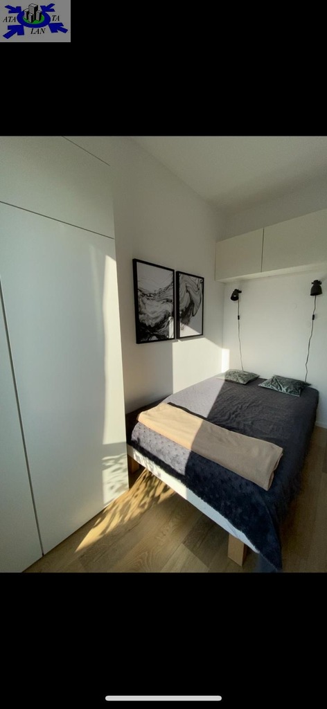 Na antresoli, która nie wlicza się do powierzchni użytkowej mieszkania sypialnia z szafą i łóżkiem.