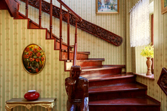 Wnętrza urzekają eleganckim stylem wiktoriańskim - mahoniowe meble, złocone lustra, stylowe tapety oraz drewniane parkiety w geometryczne wzory tworzą unikalny klimat.