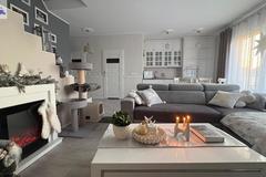 W każdej sypialni zainstalowano klimatyzację z funkcją sterowania przez Wi-Fi. Na tarasie znajduje się automatyczna markiza. Okna wyposażono w rolety antywłamaniowe sterowane pilotem.