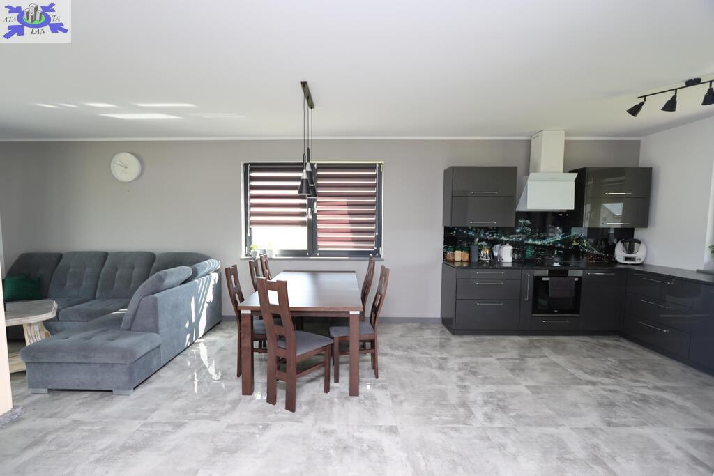 Dom parterowy o pow. użytkowej 109,80 m2 (salon z aneksem kuchennym i jadalnią + 3 pokoje, 2 łazienki, garderoba), położony na osiedlu domów jednorodzinnych, w niedalekiej odległości od lasu. Dojazd drogą prywatną utwardzoną. To doskonała nieruchomość dla rodziny 2+2.