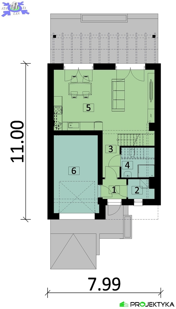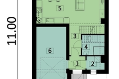 Na parterze salon z wyjściem na taras oraz ogródek, kuchnia, WC , schowek ,wiatrołap oraz garażu ok 18,5m2