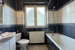 Piętro znajdują się tutaj dwie mniejsze sypialnie (po około 10 m kw.) oraz jedna duża sypialnia z przestronną, wyposażoną w okno i zabudowane szafy garderobą (całość - około 27 m kw.). Łazienka z oknem wyposażona jest w wannę.