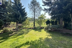 Dobrze utrzymany, słoneczny i zadbany dom w zabudowie bliźniaczej położony na pięknie obsadzonej wysoką zielenią działce (442 mkw. oraz dodatkowe ok. 160 mkw. dzierżawy z możliwością wykupu).