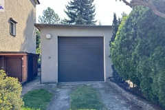 Hala garażowa Na wprost bramy wjazdowy usytuowany jest bardzo duży (około 40 m kw.), dwustanowiskowy, wysoki, murowany, wyposażony w "siłę" garaż.