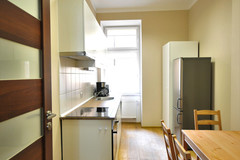 - Kuchnia o powierzchni ok.12 m2, wyposażony w meble w zabudowie stałej, lodówka, kuchenka indukcyjna, zmywarka, zlewozmywak, stół i 4 krzesła, kuchenka mikrofalowa.