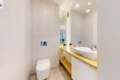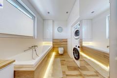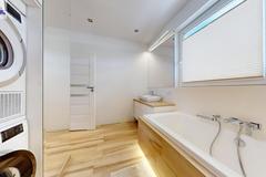 - słusznej wielkości (ok. 8 m2) łazienka razem z WC wyposażona w wannę. Z zabudową na pralkę i suszarkę oraz z oknem.